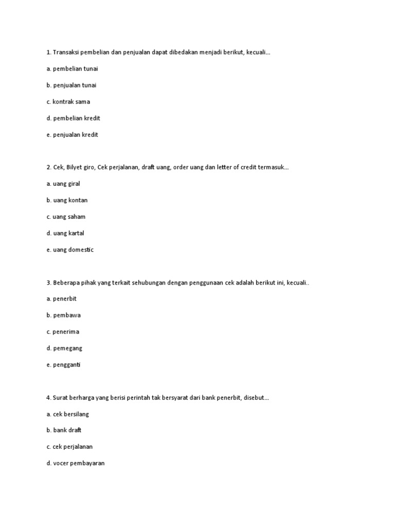 Cek, bilyet giro, cek perjalanan, draft uang, order uang dan letter of credit termasuk….
